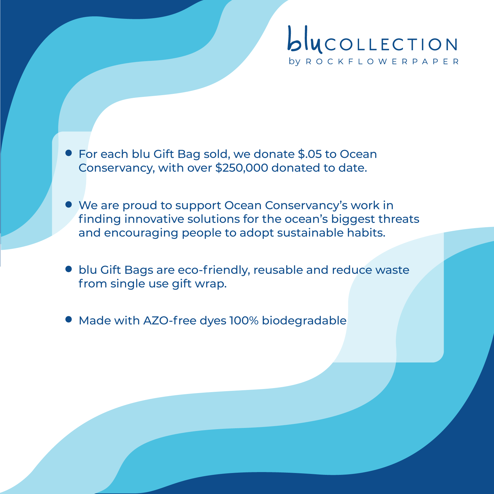 - 5 cents are donated to Ocean Conservancy for every Reusable Itsy Bitsy Gift Bag sold