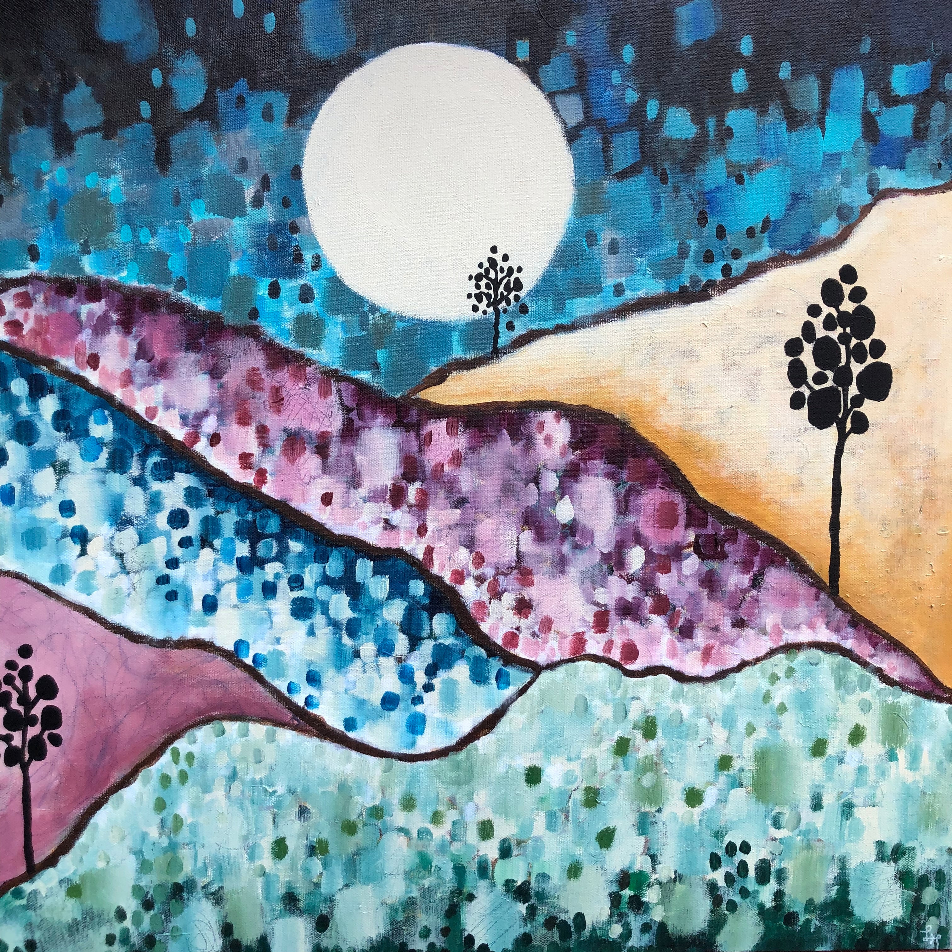 An abstract painting workshop using the power of play, experimentation, and intuition to create layered, unique, acrylic paintings that will surprise and delight you. Absolutely no talent or previous experience is required, but this approach can be freeing for practicing artists, too. At the end of the workshop series, you’ll have two finished paintings you’ll love. We build our paintings by adding layers week by week.