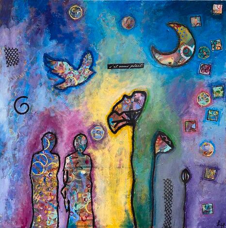 Today we put the finishing touches on our paintings, including our artist signature. Some may wish to make small final marks with acrylic markers, which will be provided. We will do a gallery walk of each other’s work, and comment on what we love. We reflect on what the process has taught us, and dream and scheme about possible next steps on our creative itinerary.