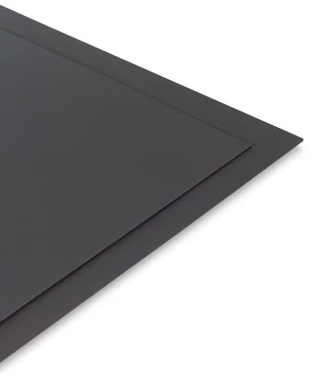 Here is a mounting or matting board that features two useable sides and a solid black middle that yields black bevels and black edges. The surface has a moderate amount of tooth that eliminates any distracting sheen and minimizes scuff marks. Super Black will enhance many presentations of artwork or photography. In single or double thicknesses. Accepts all types of wet or dry mounting techniques.
