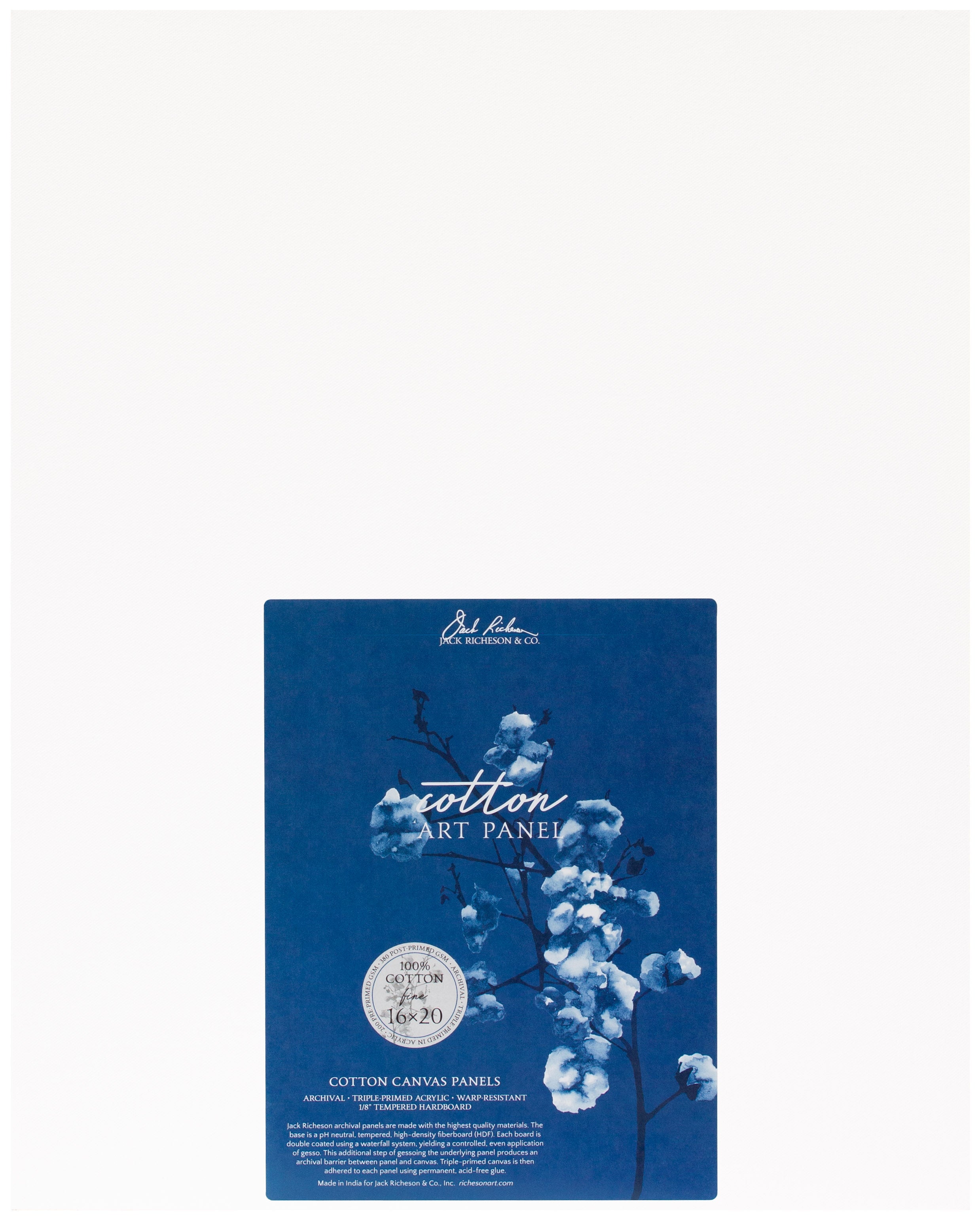 Jack Richeson archival panels are made with the highest quality materials. The base is a pH neutral, tempered, high-density fiberboard (HDF). Each board is double coated using a waterfall system, yielding a controlled, even application of gesso. This additional step of gessoing the underlying panel produces an archival barrier between panel and canvas. Triple primed canvas is then adhered to each panel using permanent, acid-free glue.
