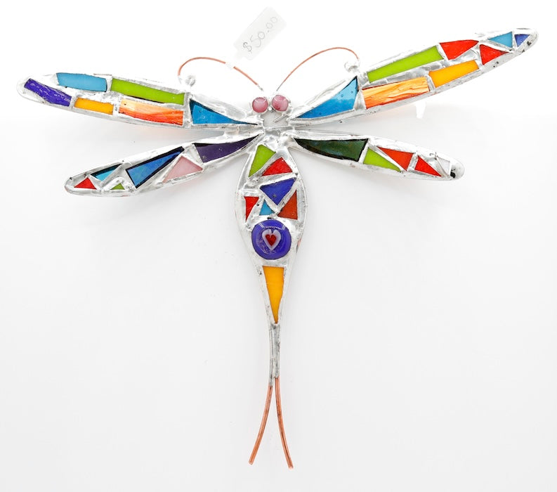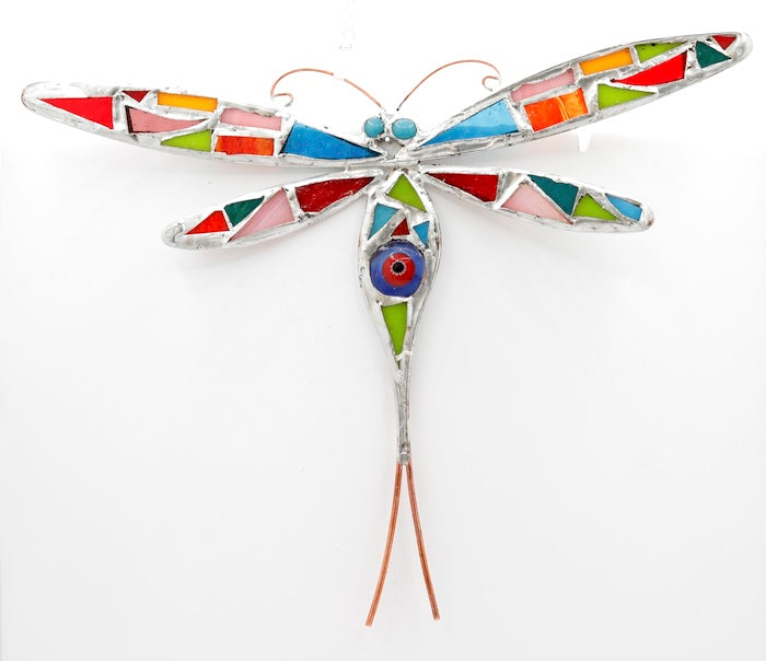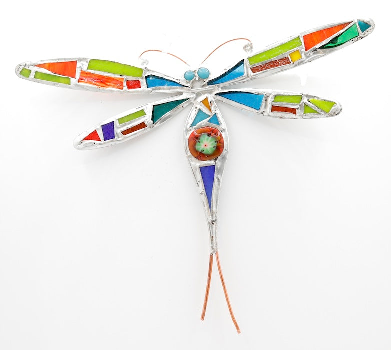 10" / Stained Glass & Agate & Copper Dragonfly Suncatcher